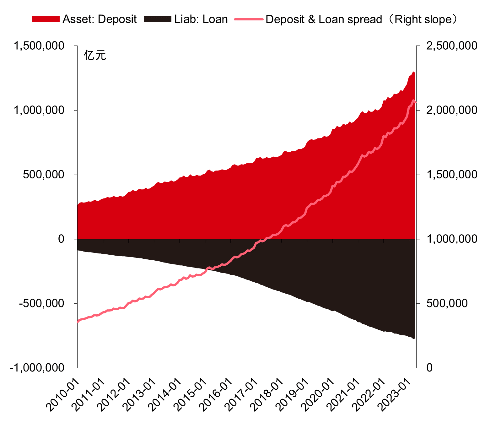 Looking at the household sector, the overall debt of households continues to grow, and the deposit and loan spread of the household sector is also increasing, with a slight acceleration during the pandemic. Considering that the loan interest rate adjustment for households may have a higher stickiness, and household come has also increased, we expect that the proportion of interest expense to income will not deteriorate significantly. However, the differences in population distribution have not been considered, and the situation of low-income groups and small and micro business owners may be more difficult.